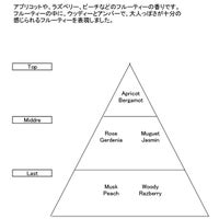 アプリコットからラズベリー、ピーチ、ウッディーやアンバーなど、大人っぽいフルーティな香りが楽しめます。